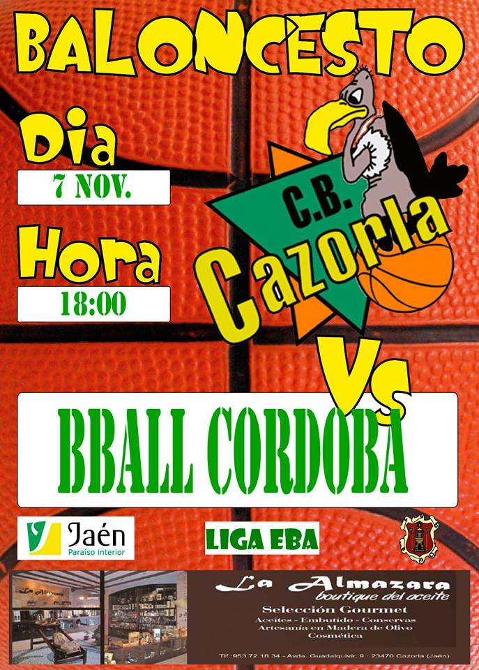 Recordar, el sábado, 7 de Noviembre, a las 6 de la tarde: CB CAZORLA JAEN PARAISO INTERIOR – BBALL CORDOBA.